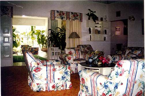 This exceptionally large Villa situated on one acre of lush captivating landscape with tropical fruit trees and native flowers that will take your breath away. With six bedrooms and each room having its own bath room you can enjoy relaxation in private and comfort. The Villa has a large 9ft deep swimming pool for you to cool off while in the tropical island of Jamaica. This home away from home is perfect for families, small groups, couples and young people who want to feel the cool morning breeze whilst gazing into the aqua blue Atlantic Ocean which can be seen from the villas great upstairs view. There are six sitting areas which include the formal living room with satellite TV, VCR and stereo, 2 lanais, a den with TV and an alcove for romantic dining or for playing a game of cards, we also have a larger dining area which overlooks the pool and the ocean.