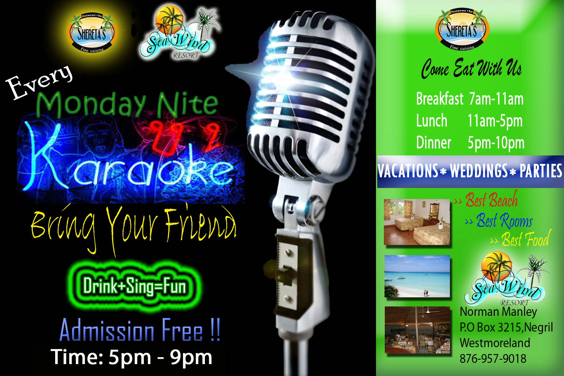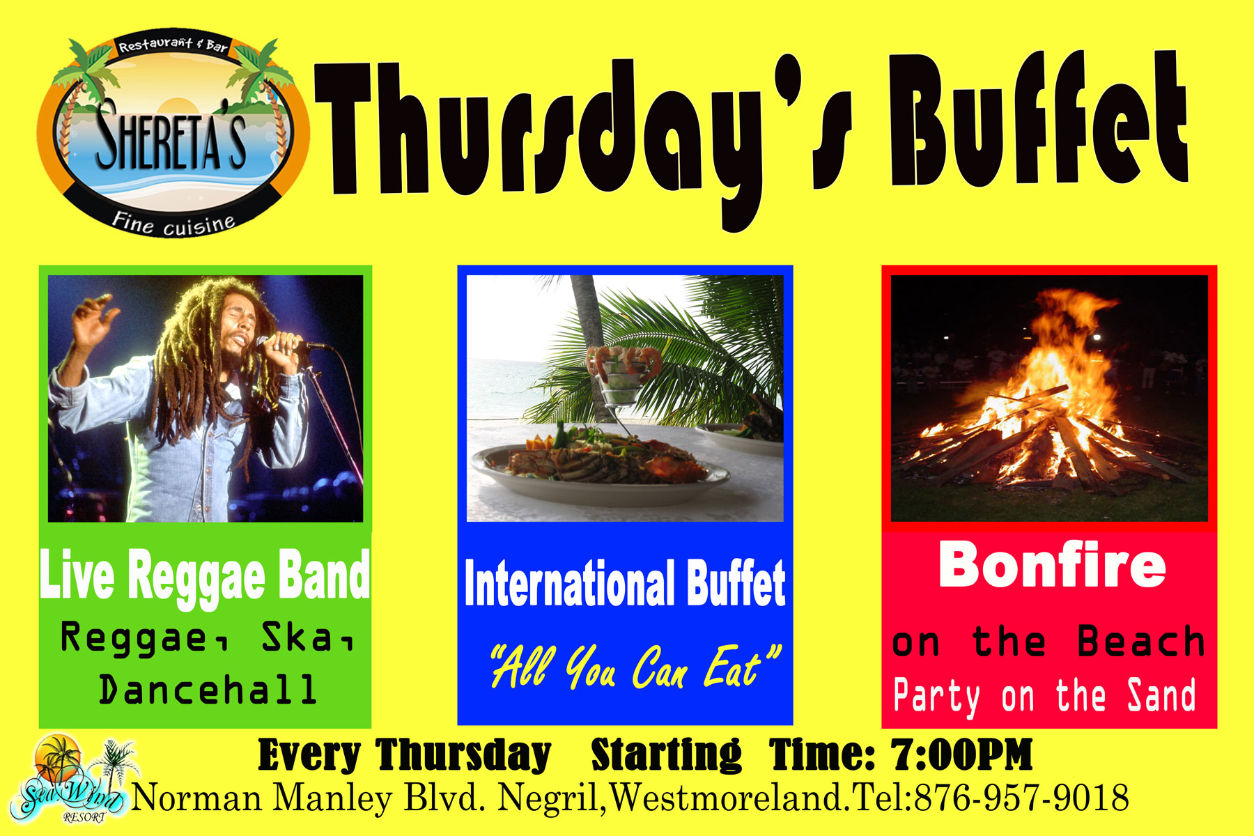A hidden paradise resort located in beautiful Negril, Jamaica. Seawind Resort is located only 1h30 min from Montego Bay Airport and directly on Negril's famous 7-miles white sand beach. Only a few steps to the beach, 5 minutes away from all shopping centers, live reggae music and great dance clubs.